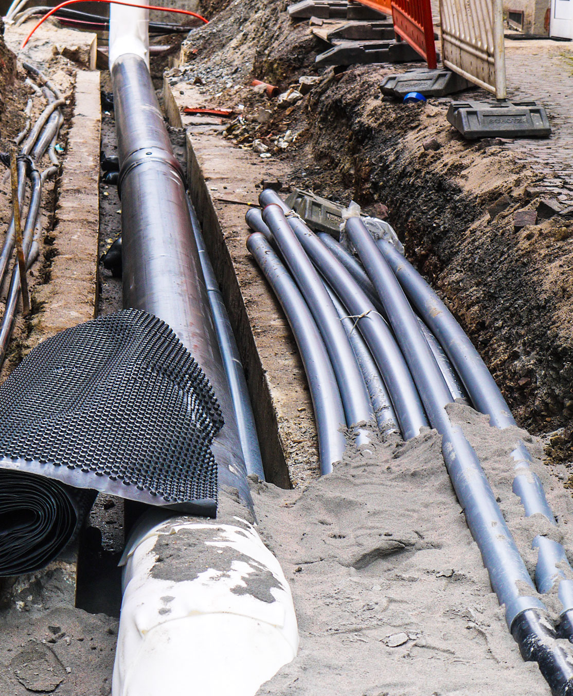 4 - Installation de l'infrastructure de base : Le chantier débute par l'installation des gaines, conduits et boîtiers d’encastrement nécessaires à la circulation des câbles et au positionnement des équipements.
